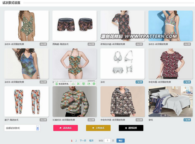 主要功能介紹: 1,上傳自有的花型圖案進(jìn)行試衣套款。 2,對(duì)于試衣的款式,如果滿足不了你的生產(chǎn)要求,可以自行上傳款式。 3,對(duì)于每個(gè)用戶,均擁有獨(dú)立的試衣間網(wǎng)址,并能設(shè)置訪問(wèn)密碼。當(dāng)你們廠家有最新的面料花型或客戶想要的花型,可以上傳到試衣間,并將試衣間的地址和訪問(wèn)密碼告知客戶,那么你的客戶就可以通過(guò)試衣間看到你的最新設(shè)計(jì)了。