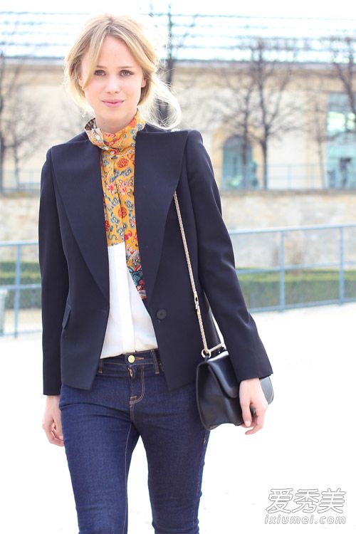 穿黑色小西裝的時(shí)候配一件明媚浪漫的印花襯衫讓造型不單調(diào),彰顯精致女人味,把浪漫穿上身。