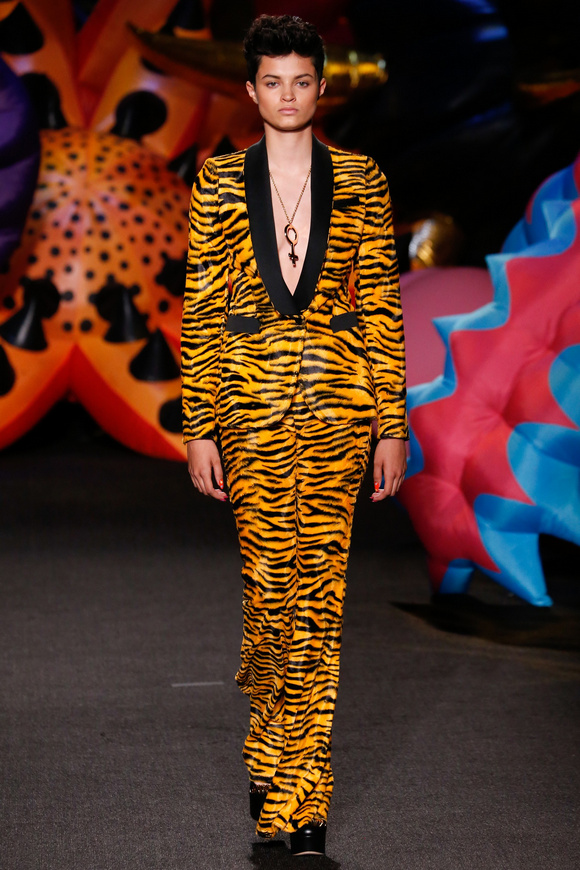 當?shù)貢r間6月11日,Moschino(莫斯奇諾)于洛杉磯發(fā)布2017早春度假系列女裝和2017春夏男裝系列。玩味十足的高飽和度顏色為整個系列帶來了歡騰的調(diào)性,另外眼花繚亂的印花、搞怪的設計也是貫穿全場,T臺上的花樣男女們帶來了濃烈的春的氣息。同樣這也是一場超模云集的大爬梯。由Mirranda Kerr開場,N年未見的戴文青木閉場,話題性十足。