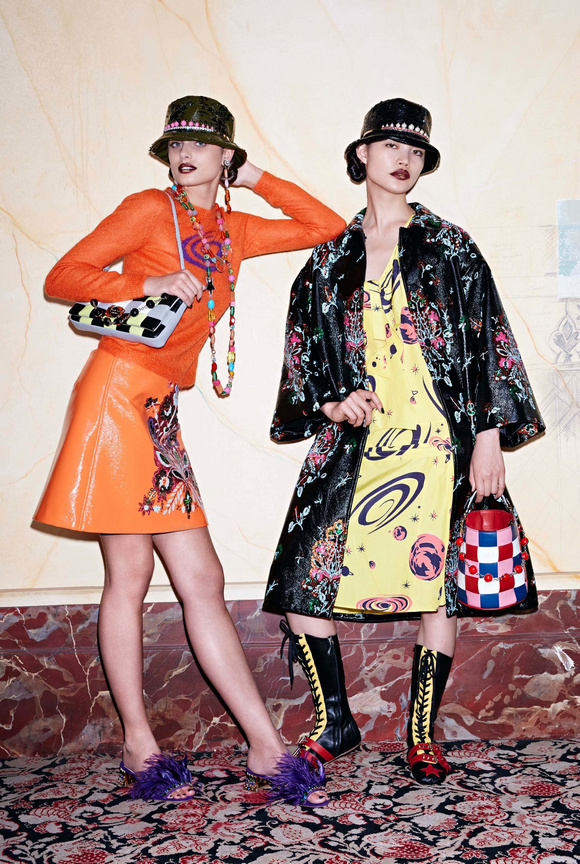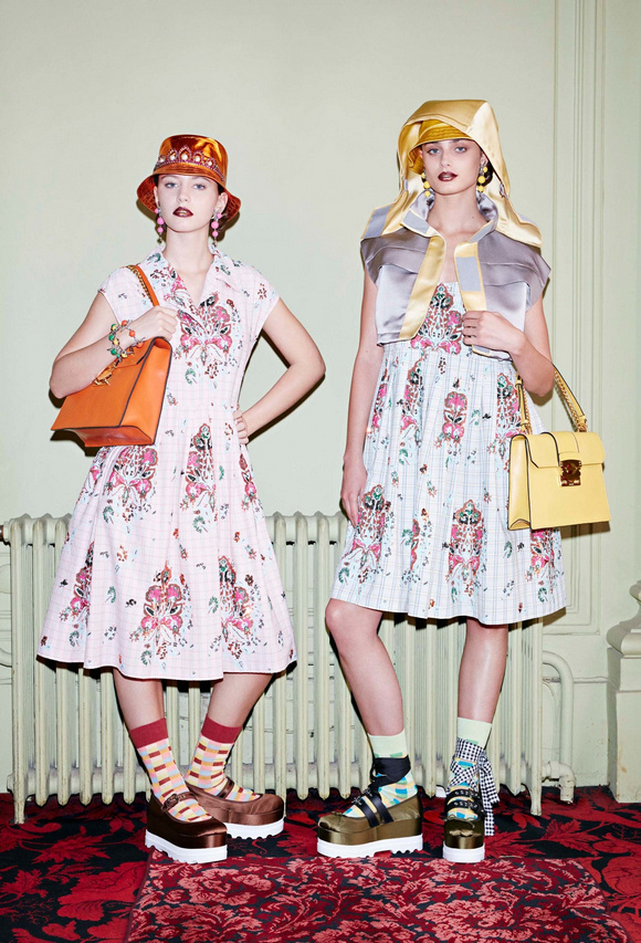 Miu Miu 繆繆這一季,跟以往一樣,無(wú)論從T恤、裙子還是編織草帽,都是強(qiáng)調(diào)印花與裝飾。這些元素未必能引起90零后的懷舊感,因?yàn)樗麄儗?shí)在太年輕了。但這完全一點(diǎn)都沒(méi)有關(guān)系,她們看起來(lái)就像一系列色彩繽紛的度假服飾系列。