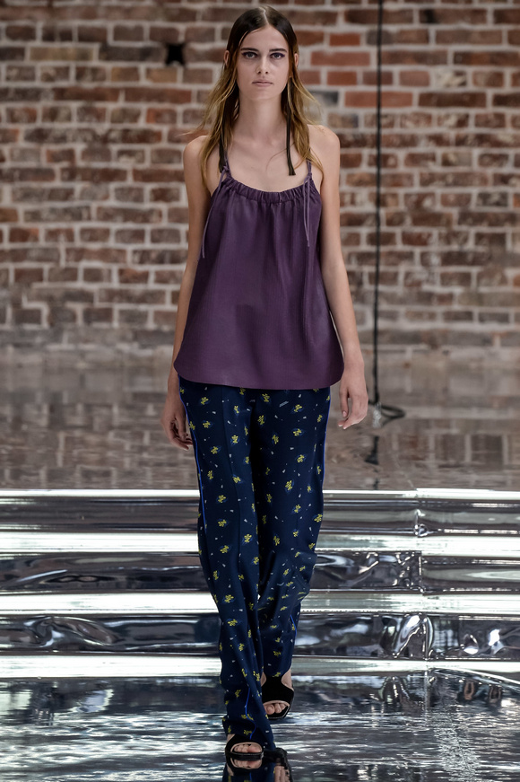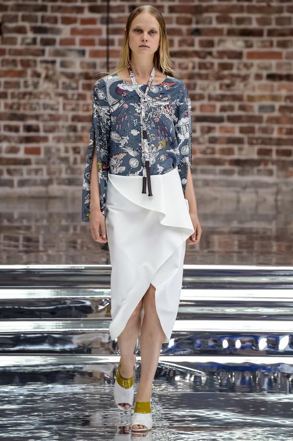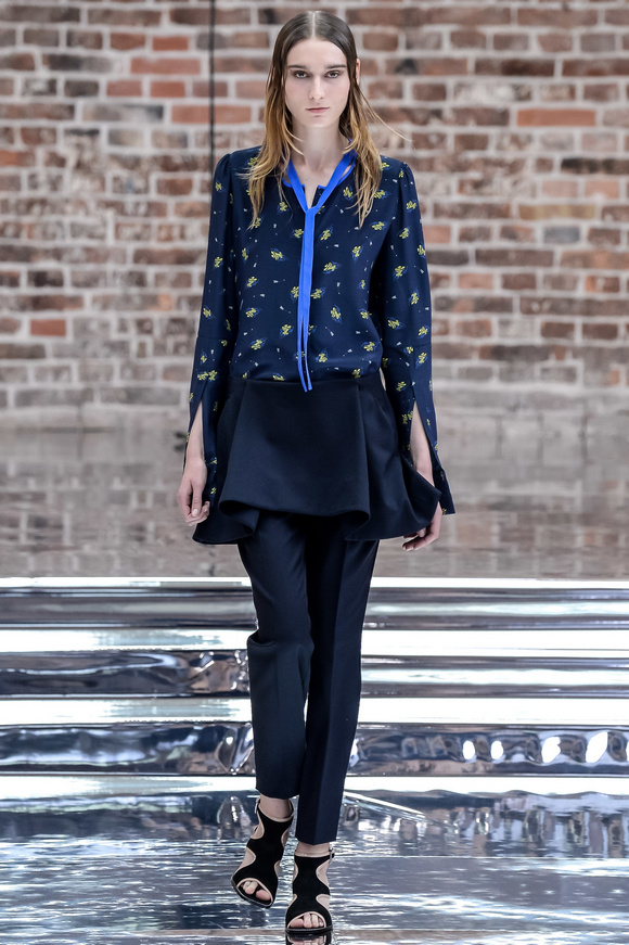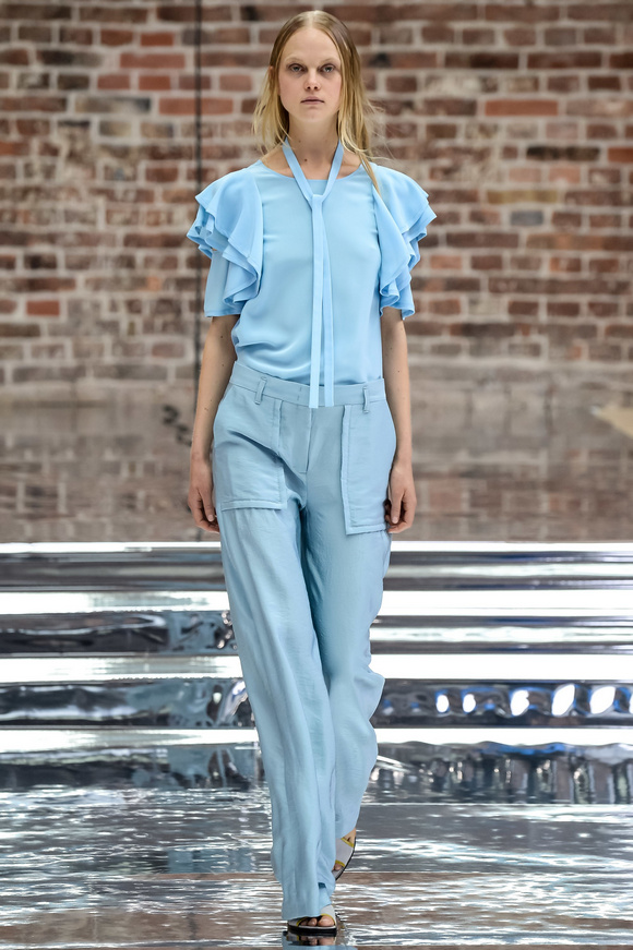 Schumacher 淑美赫 2017春季的看點(diǎn):輕浮、閃亮的胸針,荷葉的邊足夠吸睛。她始終以其獨(dú)特的方式巧妙地打破時(shí)尚傳統(tǒng)并且樹立了與眾不同的風(fēng)格,這其中融入了Dorothee Schumacher本人的幽默、輕松的生活態(tài)度以及她的心血。設(shè)計(jì)師通過對(duì)自我的認(rèn)識(shí)將其豐富的生活融為一體,并注入到設(shè)計(jì)當(dāng)中。