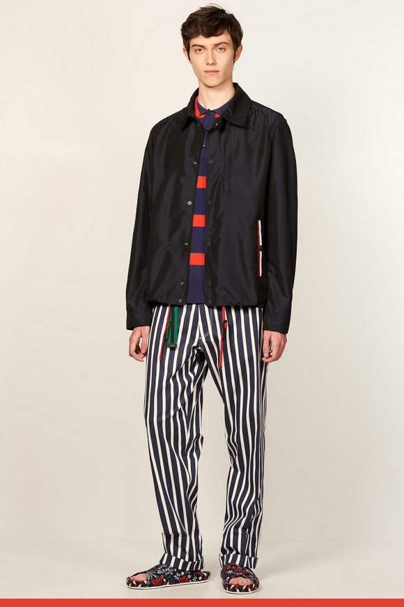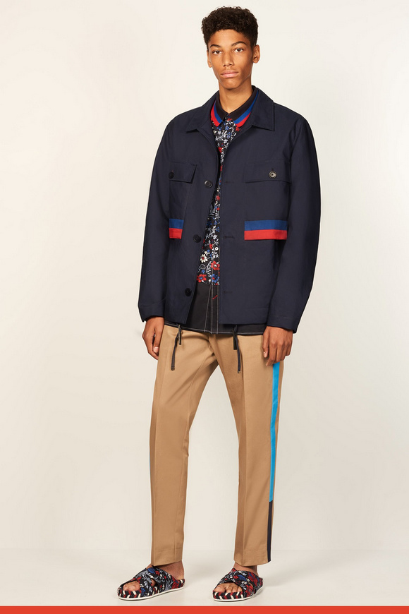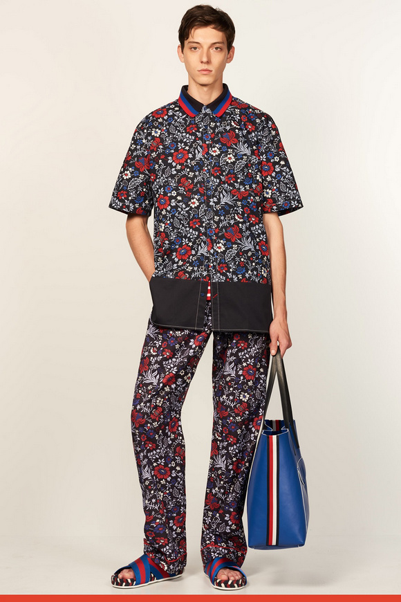2017年春季系列,是對上世紀七十年代ldquo;適合運動穿著服飾rdquo;風潮與ldquo;常春藤聯(lián)盟rdquo;風格的回眸致敬,并將版型輪廓作了再造,剪裁比例作了更新,且在細節(jié)上彰顯創(chuàng)意的可能性。印花是本季貫穿始終的元素。碎花、扎染印花、線形圖案給予本季意想不到的新鮮視覺呈現(xiàn),還有通過拼縫來展現(xiàn)輪廓,并添加了圖案拉鏈元素。套裝與睡衣既自然舒適又符合裁剪審美,且顛覆傳統(tǒng)佐以熱帶植物元素及短褲來作混搭。外套通過走運動范兒倍顯休閑,譬如套頭衫與梭形外套。破邊牛仔衣則通過短式裁剪來顯得與眾不同,以此來對工裝致敬。針織衫看似常規(guī),但在制作工藝上有極大創(chuàng)新。襯衣,卡其褲,這些都是Tommy Hilfiger風格形成的根基,通過削減超大面料,針織polo衫領(lǐng)口或者側(cè)條紋,以展現(xiàn)當代簡約剪裁與成衣結(jié)構(gòu)。每款成衣都佐以配飾,包括漁夫帽,皮革手提袋,讓人心動的新型膠底鞋,以及繩索切邊涼鞋
