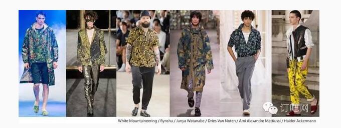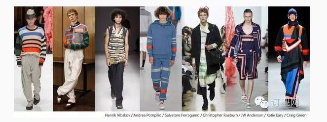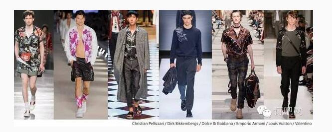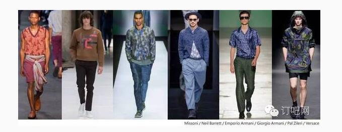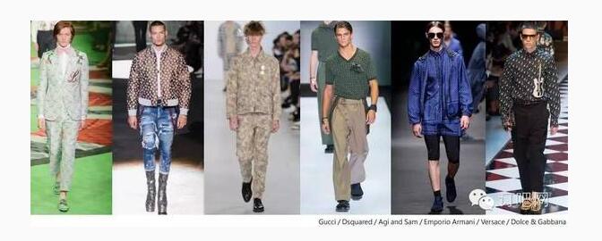 綜觀 2017 春夏巴黎、米蘭、倫敦男裝周,未來男裝在印花圖案的呈現(xiàn)上將混合 70 年代、80 年代和 90 年代元素,變化出一種新時代的改良風格。整體來說,沒有明確的季節(jié)性,多采中性的暗色調色板。叛逆非主流的醒目圖像為服裝營造出硬派的都會街頭風格。經典的條紋延續(xù)至明年春夏,以優(yōu)雅的休閑風或時尚的條紋混搭,呈現(xiàn)不同的條紋風情。中東風格的精美花紋是現(xiàn)代花美男的優(yōu)選,同時符合環(huán)球旅行者的出走潮流。此外,不規(guī)律的重復碎花、叢林迷彩、稀有動植物、幾何圖案,也仍保有重要地位。