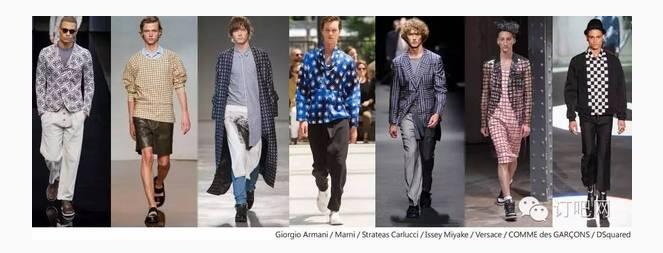 翻新商業(yè)模式的棋盤格圖案,以扭歪、偏移的網(wǎng)格圖案,搭配亮眼襯衫或是外套,成為 2017 春夏男裝的理想選擇。例如 Marni 正規(guī)棋盤格圓領衫搭配休閑短褲,流露出休閑的度假韻味;Giorgio Armani 結合菱形窗欞及十字徽章變化出新格紋;Issey Miyake 以粗細不同的線條拼貼組合的格紋圖樣;以及 Strateas Carlucci 階梯狀的棋盤格大衣與 Versace 以斜線交錯出的條格紋西裝,都有股休閑的雅痞風格。