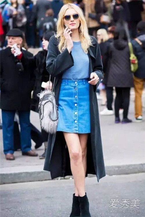 黑色風(fēng)衣配灰色針織衫和牛仔紐扣裙,脫掉外套就是清爽的夏季look,足輕松應(yīng)對(duì)換季的天氣。