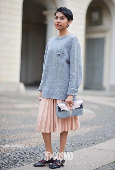 這是島嶼一直在推薦的冬日最佳內(nèi)搭組合之一,因為毛衣實在是秋冬單品中不能忽略掉的。毛衣搭配長裙更是小粗腿星人的救星,百褶裙;裹身裙都是可以選擇的單品之一,oversize的款更是用來搭配裙子的必勝法寶,帥氣的感覺和優(yōu)雅的感覺混搭在一起,簡直不能再誘人!