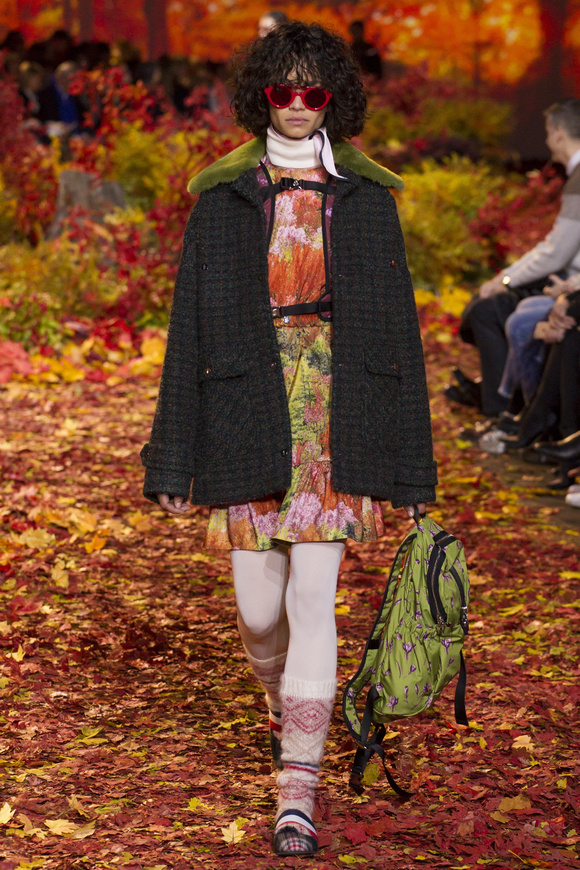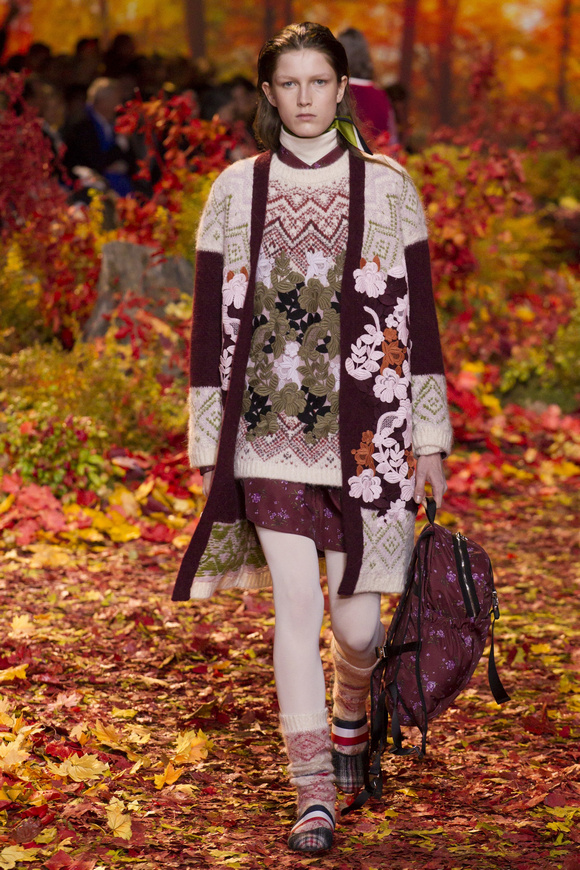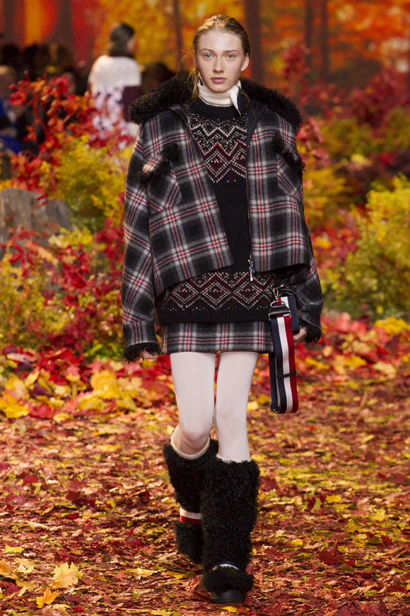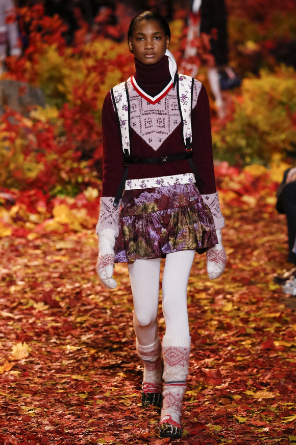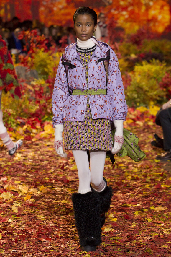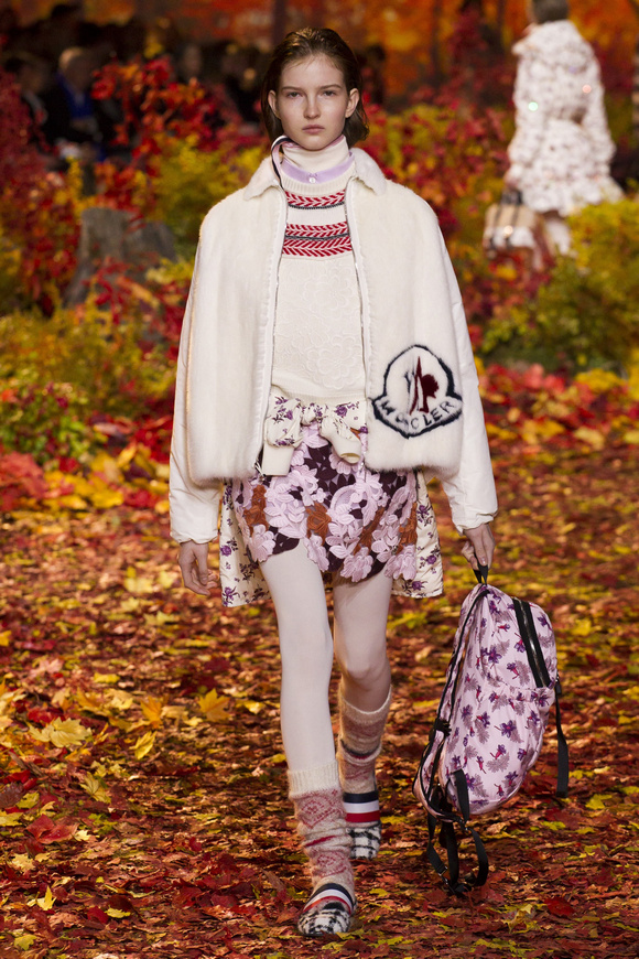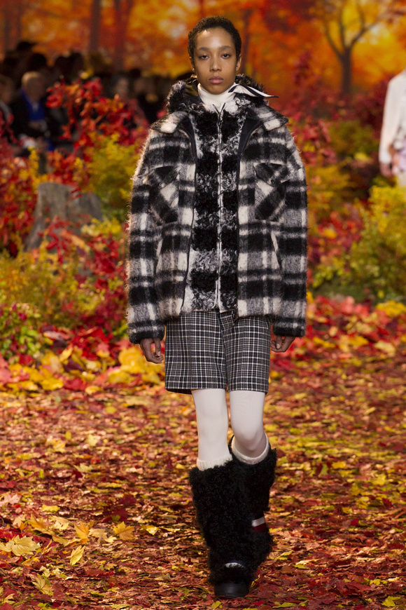 Moncler Gamme Rouge這一季的秀場(chǎng)布置成秋天的樹林,格子夾克、毛絨外套。一個(gè)理想的視覺(jué),看到有歐洲的痕跡,也有加拿大的風(fēng)格。