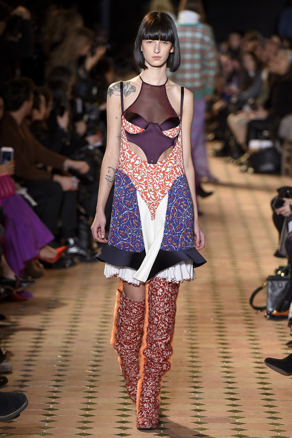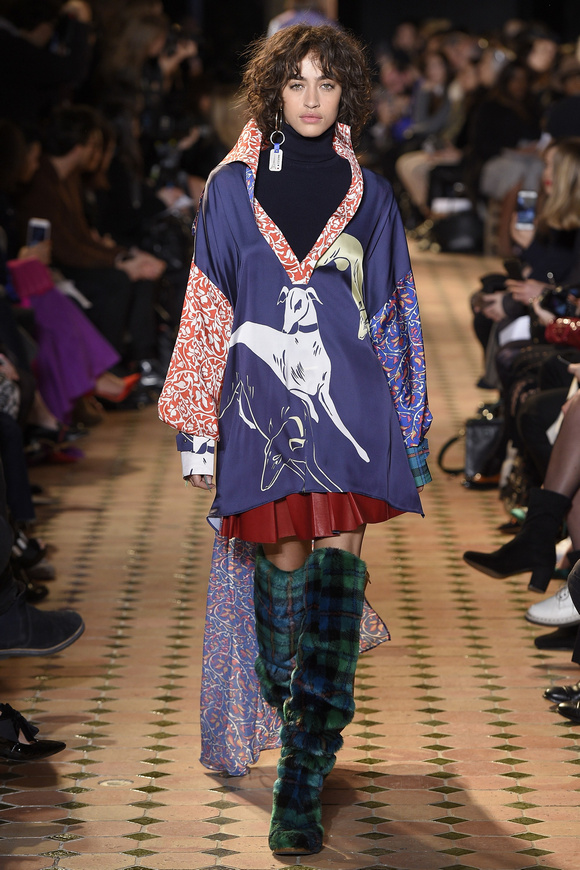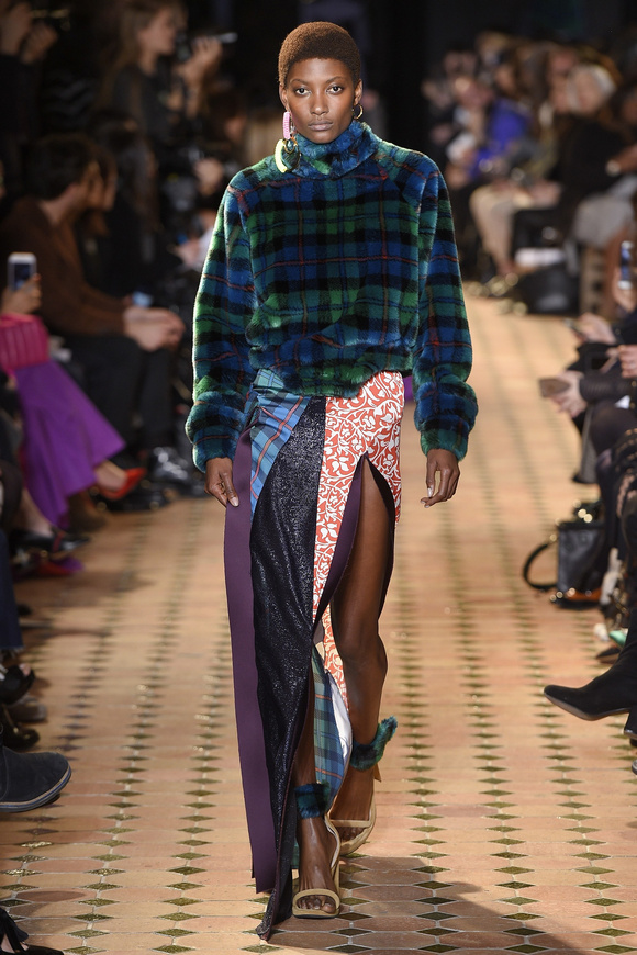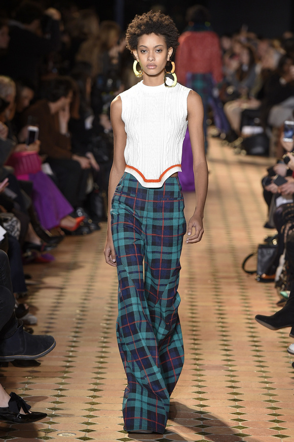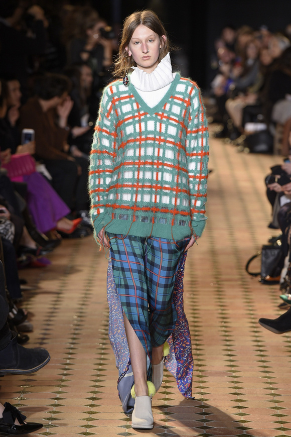 Esteban Cortazar這一季的最新設計,大量運用了格子,這可能源于他母親的嬰國血統。他這個賽季的女裝設計描述為ldquo;吉卜賽女人朋克rdquo;。