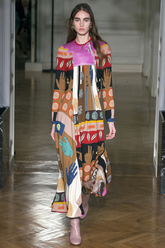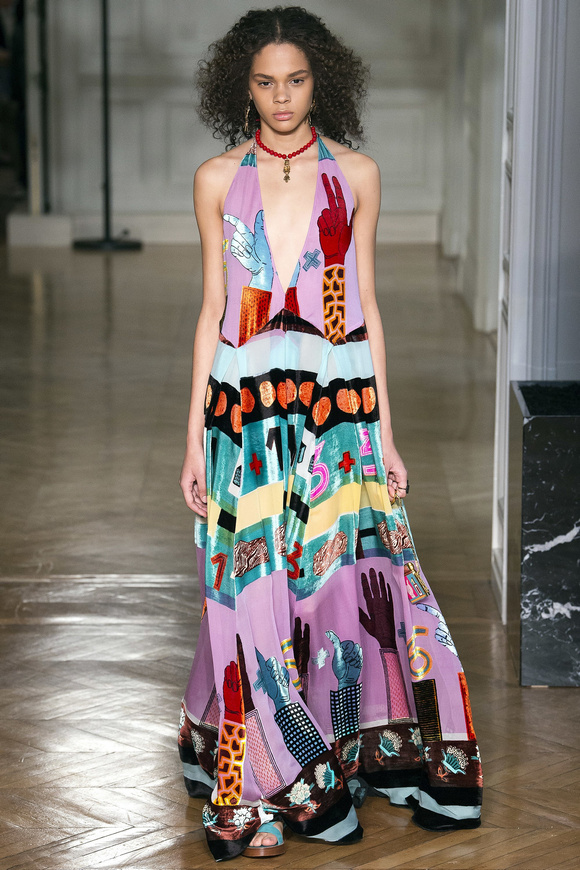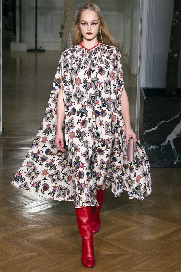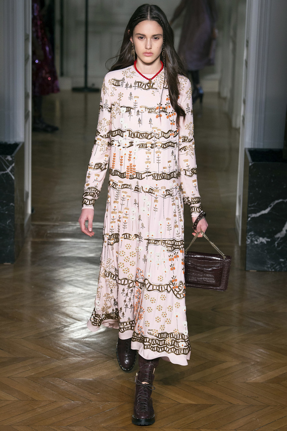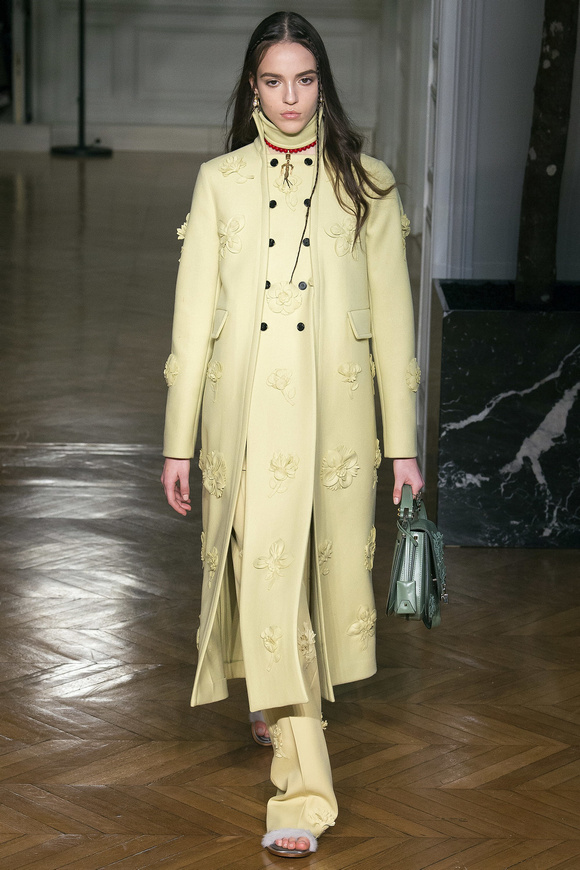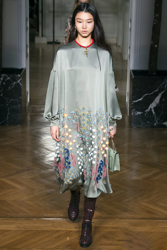 Valentino 2017 秋冬秀甫剛落幕,設計靈感來源于法國藝術家Nathalie De Pasquier的設計作品,結(jié)合維多利亞風格打造出奢華有趣的浪漫時尚,由創(chuàng)意總監(jiān) Pierpaolo Piccioli 操刀保持浪漫、唯美的桀騖風骨,用輕盈有質(zhì)感的面料加上薄紗、珠片或者鑲邊的碎花,賦予女性一種新的仙氣姿態(tài)。Valentino經(jīng)典的粉紅色還有紅色貫穿秀場,這次還出現(xiàn)了許多繽紛的冰淇淋色,像是奶黃、蜜橘、薄荷綠等,讓沉悶的秋冬多了點活潑的色彩。