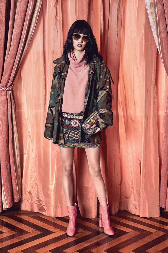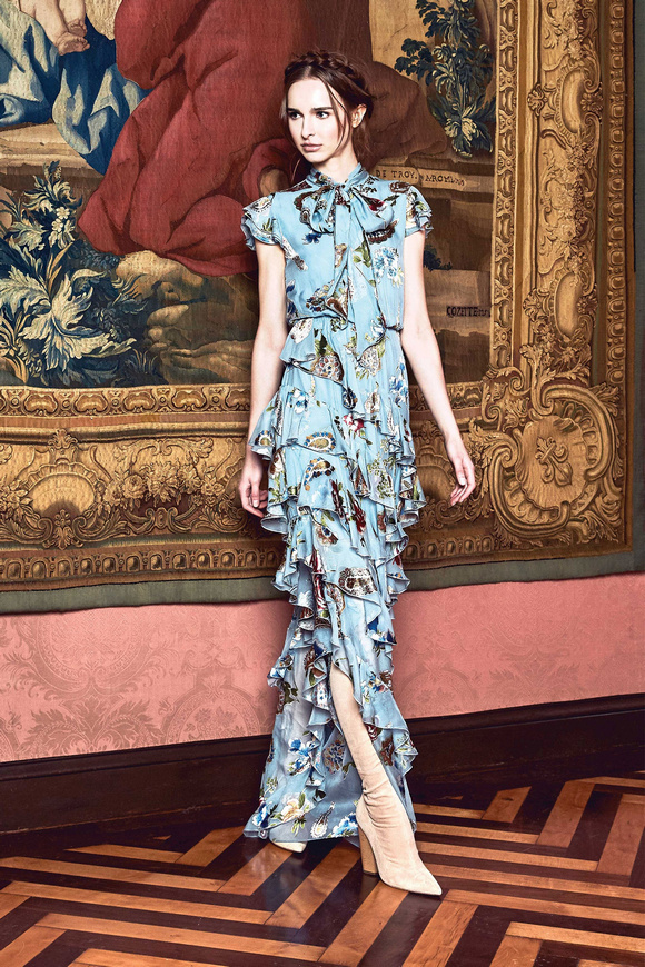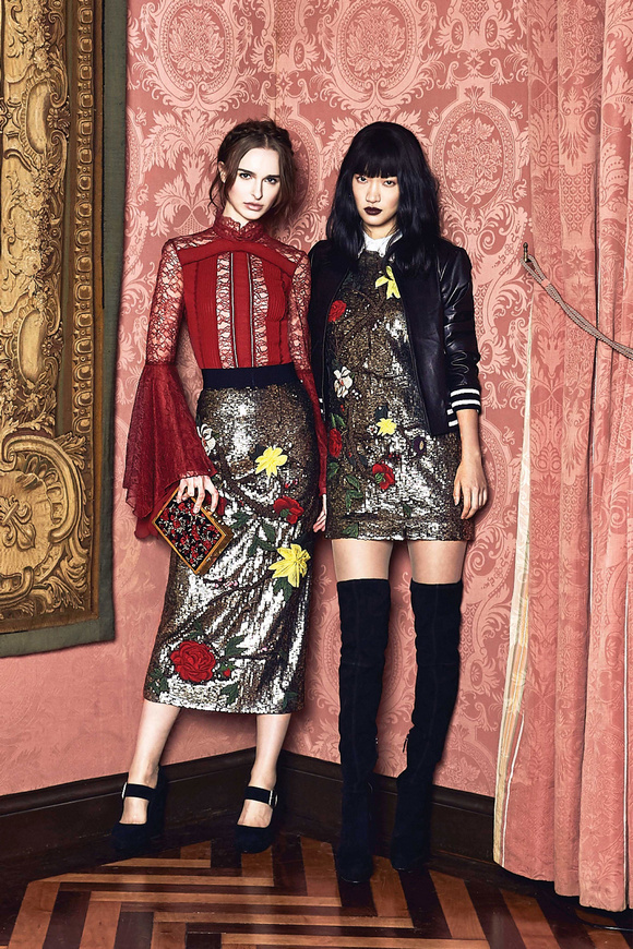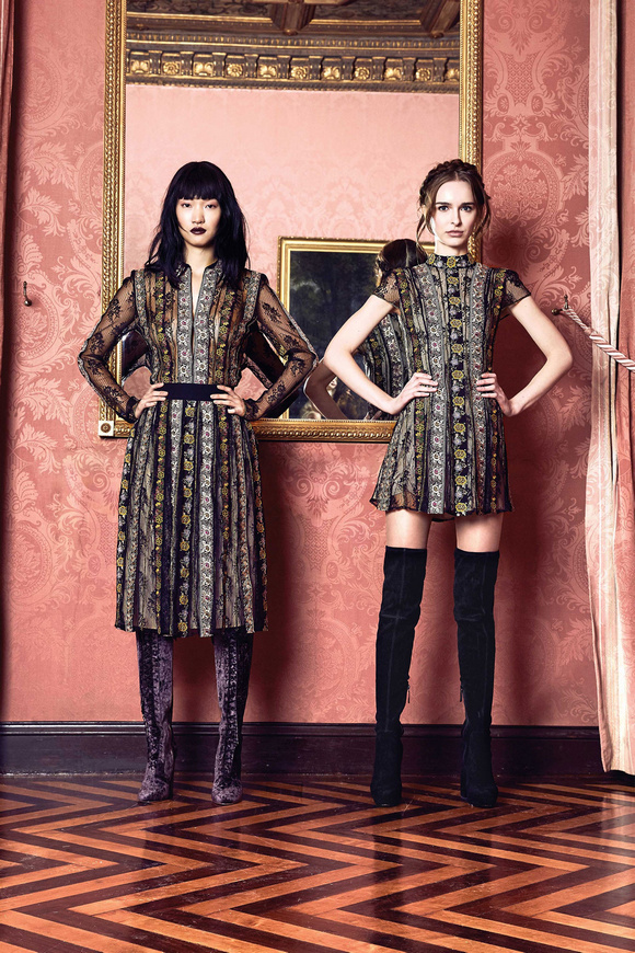 Alice Olivia 這一季的設(shè)計(jì)靈感,來源于她的設(shè)計(jì)師Stacey Bendet 收到的一份特殊的生日禮物,讓她這一季的設(shè)計(jì)充滿了印度皇室和意大利文藝復(fù)興的元素。關(guān)于這一季的作品,她還提出一句口號:ldquo;改變你看到的世界rdquo;。