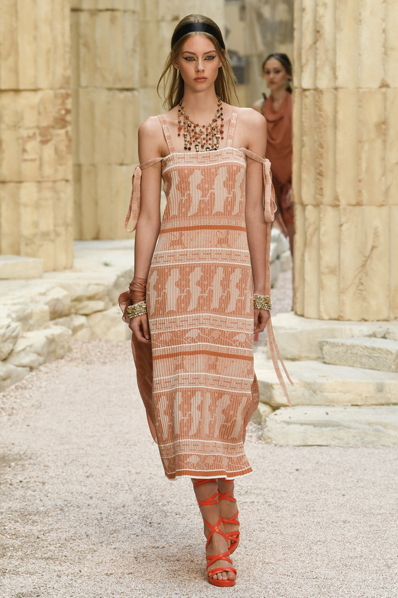 Chanel 香奈兒2018最新休閑時裝將我們帶到古希臘的凈土,在搖搖欲墜的柱子和斷裂的石板中開啟了時裝秀。這一季服裝的設(shè)計靈感,來源于希臘的關(guān)于畫廊的著名網(wǎng)站。時尚是一種周而復(fù)始的變化。