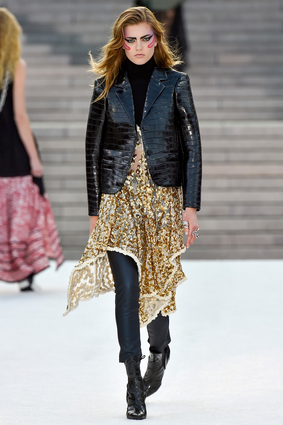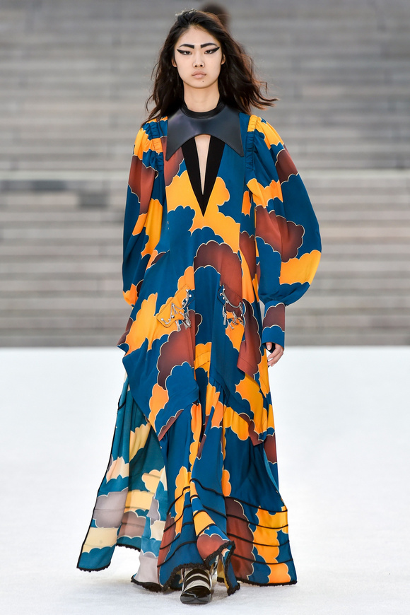 Louis Vuitton 路易斯威登2018休閑時裝這一季的發(fā)布會選在日本的京都舉行,設(shè)計師NNicolas在這里累積了大量的粉絲。這一季的設(shè)計,將日本的武士盔甲、黑澤明的顏色、歌舞伎化妝、傳統(tǒng)版畫的漁民和70年代晦澀的日本電影系列的元素都混雜在一起。
